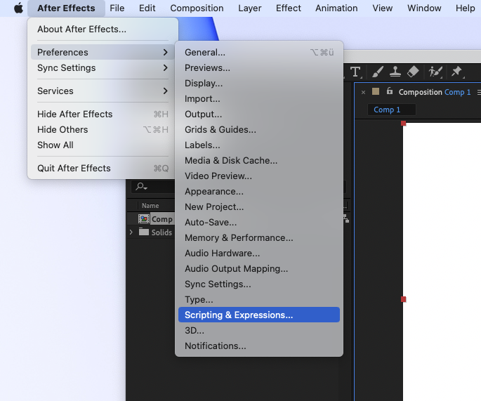 In the After Effects menu, go to Preferences -> Scripting & Expressions...